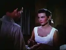 Jean Peters mends Joseph Cotten's hand in Niagara