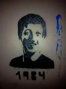 • The hallway smelt of boiled cabbage and old rag mats. At one end of it a coloured poster, too large for indoor display, had been tacked to the wall. It depicted simply an enormous face, more than a metre wide: the face of a man of about forty-five, with a heavy black moustache and ruggedly handsome features.