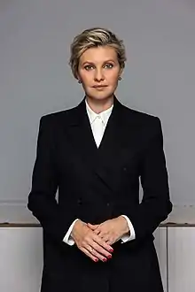 Olena Volodymyrivna Zelenska (née Kiyashko; Ukrainian: Олена Володимирівна Зеленська (Кіяшко); born 6 February 1978) is a Ukrainian screenwriter who is the current First Lady of Ukraine as the wife of President Volodymyr Zelenskyy.