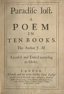Paradise Lost (1667, 1674) is an epic poem by the 17th century English poet John Milton. The poem concerns the Christian story of the fall of Satan and his brethren and the rise of Man: the temptation of Adam and Eve by Satan and their expulsion from the Garden of Eden.