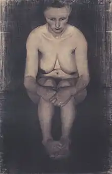 Paula Modersohn-Becker, 1899: 'Sitting female nude', coal-drawing on paper; current location: Paula Modersohn-Becker Museum Bremen