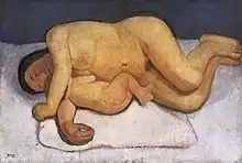 Paula Modersohn-Becker, 1907: 'Reclining Mother and Child', painting; current location: Paula Modersohn-Becker Museum Bremen