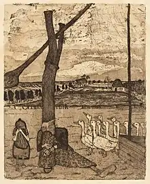 Paula Modersohn-Becker, 1899: 'Goose Girl / Die Gänsemagd', etching in dark brown on wove paper; location unknown
