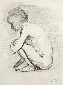 Paula Modersohn-Becker, c. 1898: 'Squatting girl act', pencil on paper
