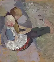 Paula Modersohn-Becker, 1904: 'Bäuerin mit Kind / Farmer's wife with child', oil on cardboard mounted on panel; location unknown