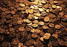 A penny is a coin (pl. pennies) or a unit of currency (pl. pence) in various countries. Borrowed from the Carolingian denarius (hence its former abbreviation d.), it is usually the smallest denomination within a currency system.