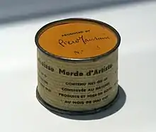 - In May 1961, while he was living in Milan, Piero Manzoni produced ninety cans of Artist's Shit. Each was numbered on the lid 001 to 090. Tate's work is number 004. A label on each can, printed in Italian, English, French and German, identified the contents as '"Artist's Shit", contents 30gr net freshly preserved, produced and tinned in May 1961.' In December 1961 Manzoni wrote in a letter to the artist Ben Vautier: 'I should like all artists to sell their fingerprints, or else stage competitions to see who can draw the longest line or sell their shit in tins. The fingerprint is the only sign of the personality that can be accepted: if collectors want something intimate, really personal to the artist, there's the artist's own shit, that is really his.' (Letter reprinted in 'Battino and Palazzoli', p. 144)
