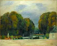 Renoir, 1900-1905: 'Versailles', oil on canvas; - a view of the courtyard on the north side of the chateau of Versailles; chestnut trees line the allée.