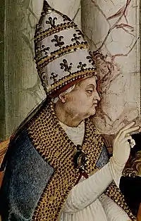 Pope Pius II (Latin: Pius PP. II, Italian: Pio II), born Enea Silvio Bartolomeo Piccolomini (Latin Aeneas Silvius Bartholomeus; 18 October 1405 – 14 August 1464) was head of the Catholic Church and ruler of the Papal States from 19 August 1458 to his death. He was born at Corsignano in the Sienese territory of a noble but impoverished family. His longest and most enduring work is the story of his life, the Commentaries, which is the only revealed autobiography ever to have been written by a reigning pope.