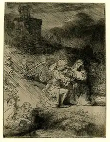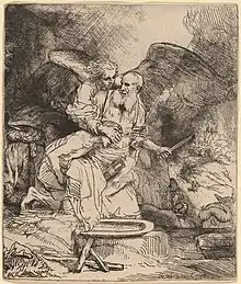 Rembrandt, 1655: 'Abraham's Sacrifice', etching and dry-point on paper; location: National Gallery of Art, Washington, U.S.