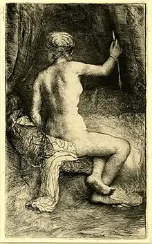Rembrandt, 1632: 'Nude Woman Reclining', black chalk and white chalk on paper; current location: Nationalmuseum, Stockholm