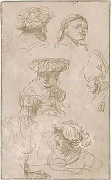 Rembrandt, c. 1633: 'Five Studies of Heads' (front-page of a two-sided drawing), silverpoint on parchment; current location: Museum Boijmans Van Beuningen, Rotterdam