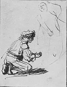 Rembrandt, c. 1633: 'Man Kneeling', drawing on paper, technique is unknown; location: Städel Museum, Frankfurt, Germany