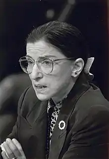 Ruth Joan Bader Ginsburg (March 15, 1933 – September 18, 2020) was an Associate Justice of the Supreme Court of the United States. Ginsburg was appointed by President Bill Clinton and took the oath of office on August 10, 1993. She was the second female justice (after Sandra Day O'Connor) and was one of three female justices serving on the Supreme Court (along with Sonia Sotomayor and Elena Kagan). She was generally viewed as belonging to the liberal wing of the Court. Before becoming a judge, Ginsburg spent a considerable portion of her legal career as an advocate for the advancement of women's rights as a constitutional principle. She advocated as a volunteer lawyer for the American Civil Liberties Union and was a member of its board of directors and one of its general counsel in the 1970s. She was a professor at Rutgers School of Law–Newark and Columbia Law School. Ginsburg died on September 18, 2020.