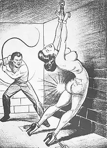 • There are one or two rules of thumb which are useful in distinguishing sadism from exciting adventure in the comics. Threat of torture is harmless, but when the torture it’s self is shown it becomes sadism. When a lovely heroine is show bound to the stake, comics followers are sure that the rescue will arrive just in the nick of time. The readers wish is to see save the girl, not to see her suffer. A bound or chained person does not suffer even embarrassment in the comics, and the reader, therefore is not being taught to enjoy suffering.