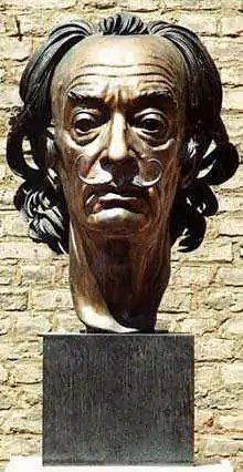 sculpture of Salvador Dali, made by Arno Breker, 1975 - quote of Dali, 1953: 'Every morning upon awakening, I experience a supreme pleasure: that of being Salvador Dalí, and I ask myself, wonderstruck, what prodigious thing will he do today, this Salvador Dalí'