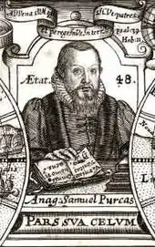 Samuel Purchas (c. 1577 – 1626), an English cleric, published several volumes of reports by travellers to foreign countries. He is not to be confused with a Samuel Purchas (died c. 1658), author of A Theatre of Political Flying-Insects.