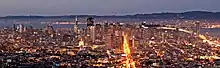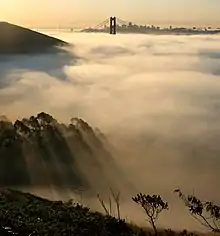 - It seemed like a matter of minutes when we began rolling in the foothills before Oakland and suddenly reached a height and saw stretched out ahead of us the fabulous white city of San Francisco on her eleven mystic hills with the blue Pacific and its advancing wall of potato-patch fog beyond, and smoke and goldenness of the late afternoon of time.