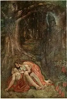 - The kings daughter and the hermits son are therefore married, and the bride strive to forget the ominous prophesy; but as the last day approaches her anxiety becomes irrepressible. She exhausts herself in prayers and penances, hoping to stay the hand of the destroyer; yet all the while dares not reveal the fatal secret to her husband. As the last dreaded day arrives, and Satyavan sets out to cut in the forest. His wife asks leave to accompany him, but with a heavy heart. Satyavan soon makes the wood resound with his hatchet, when suddenly through his temples shoots a thrill of agony, and feeling himself falling he calls out to his wife to support him.