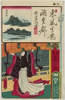 Sei Shōnagon (966-1017/1025) was a Japanese author and a court lady who served the Empress Consort Teishi around the year 1000. She is known as the author of The Pillow Book (makura no sōshi).