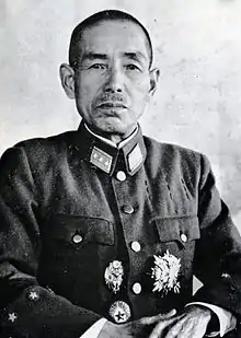 Shunroku Hata (July 26, 1879 – May 10, 1962) was a field marshal in the Imperial Japanese Army during World War II. He was appointed as commanding general of the Central China Expeditionary Army in February 1938, to replace General Matsui Iwane. Hata returned to China as commander-in-chief of the China Expeditionary Army in March 1941 and was the main commander at the time of the Changjiao Massacre. He was awarded the rank of field marshal on June 2, 1944. Hata was arrested by the American occupation authorities after the end of the war, and charged with war crimes. In 1948, as a result of the International Military Tribunal for the Far East, he was sentenced to life imprisonment under the charges of conspiracy, waging aggressive war, and disregarding his duty to prevent atrocities. He was paroled in 1955, and died later in 1962.
