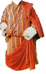 - Golden silk with deep red tie