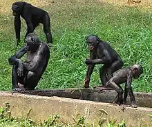 • It is true that the chimpanzee is dominance-oriented, violent, territorial. But it's also cooperative in many ways, and so that side is sometimes forgotten. The bonobo is sensual, sensitive, sexual, a peacemaker, but also can have a nasty side, and that's sometimes forgotten. So both species are sort of the ends of the spectrum, and we fall somewhere in between. Clearly, we have both of these sides in us, and that's why I sometimes call us "the bipolar apes."