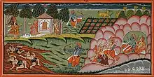 - One of the dramatic episodes in the Ramayana is the abduction by Ravana, the demon-king of Ceylon, of Sita, wife of Rama exiled in the forest. Rama is lured into the forest in pursuit of a deer (a demon in disguise), and his brother Lakshmana, guarding Sita, is tricked into leaving her. Ravana then appears, sweeps Sita off in his aerial chariot. A great vulture, Jatayu, tries to rescue her and though mortally wounded lives long enough to tell Rama of Sita's abduction.