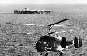 Image: Soviet Kamov Ka-27, flying near the Enterprise, 1988.