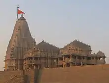 The Somnath temple located in Prabhas Patan near Veraval in Saurashtra on the western coast of Gujarat, is believed to be the first among the twelve jyotirlinga shrines of Shiva. It is an important pilgrimage and tourist spot of Gujarat. Destroyed and reconstructed several times in the past, the present temple was reconstructed in Chaulukya style of Hindu temple architecture and completed in May 1951.