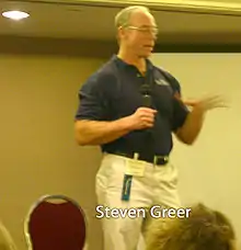 Dr. Steven M. Greer (June 28, 1955) is an American ufologist and retired traumatologist who founded the Center for the Study of Extraterrestrial Intelligence (CSETI) and the Disclosure Project, which seeks the disclosure of allegedly classified secret UFO information.
