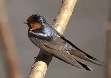 Swallows and martins are a group of passerine birds in the family Hirundinidae that are characterised by their adaptation to aerial feeding. Swallow is used colloquially in Europe as a synonym for the barn swallow.