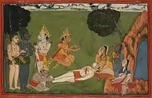 Tara (Ramayana) (Sanskrit: तारा, Khmer: តារា Tārā, literally "star") in the Hindu epic Ramayana, is the Queen of Kishkindha and wife of the monkey (vanara) King Vali. After being widowed, she becomes the Queen of Sugriva, Vali's brother. Tara is described as the daughter of the monkey physician Sushena in the Ramayana, and in later sources, as an apsara (celestial nymph) who rises from the churning of the milky ocean. She marries Vali and bears him a son named Angada. Tara's intelligence, presence of mind, courage, and devotion to her husband Vali is praised. She is extolled as one of the panchakanya ("five (revered) women"), the recital of whose names is believed to dispel sin.