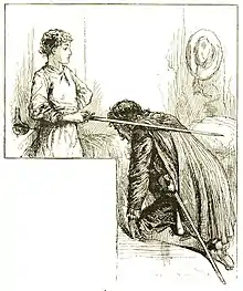 A sounding blow upon the Prince's shoulder from Canty's broad palm sent him staggering into goodwife Canty's arms, who clasped him to her breast, and sheltered him from a pelting rain of cuffs and slaps by interposing her own person. The frightened girls retreated to their corner; but the grandmother stepped eagerly forward to assist her son. The Prince sprang away from Mrs. Canty, exclaiming—