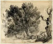 Gainsborough, c. 1750-55: 'Study of willows', drawing from a sketchbook