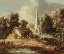 Gainsborough, 1771: 'Landscape with cottage and church', oil-painting