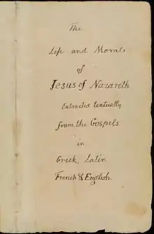 • Adams, Dickinson W., ed. Jefferson's Extracts from the Gospels (1983). All three of Jefferson's versions of the Gospels, with relevant correspondence about his religious opinions. Valuable introduction by Eugene Sheridan.