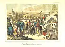 Thomas Müntzer (ca. 1489 – 27 May 1525) was a German preacher and theologian of the early Reformation whose opposition to both Luther and the established Catholic church led to his open defiance of feudal authority in central Germany. Müntzer was foremost amongst those reformers who took issue with Luther’s compromises with feudal authority. He became a leader of the German peasant and plebeian uprising of 1525, was captured after the battle of Frankenhausen, and was tortured and executed.