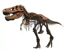 - Tyrannosaurus è universalmente noto con l'intero nome specifico, Tyrannosaurus rex, fatto che lo eleva al di sopra del genere anonimato delle altre specie di fossili, quasi tutte note solo col nome generico, senza mai menzione della specie. Qualcuno cita mai Velociraptor mongoliensis? No, esiste solo "il velociraptor" (o, peggio, "il raptor").