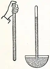 - Thus, if a light vessel with a narrow mouth be taken and applied to the lips, and the air be sucked out and discharged, the vessel will be suspended from the lips, the vacuum drawing the flesh towards it that the exhausted space may be filled. It is manifest from this that there was a continuous vacuum in the vessel. The same may be shown by means of the egg-shaped cups used by physicians, which are of glass, and have narrow mouths. When they wish to fill these with liquid, after sucking out the contained air, they place the finger on the vessel's mouth and invert them into the liquid; then, the finger being withdrawn, the water is drawn up into the exhausted space, though the upward motion is against its nature. Very similar is the operation of cupping-glasses, which, when applied to the body, not only do not fall though of considerable weight, but even draw the contiguous matter toward them through the apertures of the body.