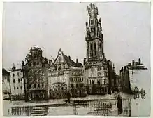 - Some time ago I saw a painting by Thijs Maris [= Matthijs Maris, one of the three brothers Maris, all three famous Dutch impressionist painters of the Hague School ] that reminded me of it. An old Dutch town with rows of brownish red houses with step-gables and tall flights of steps, grey roofs, and white or yellow doors, window-frames and cornices; canals with ships and a large white drawbridge, a barge with a man at the tiller going under it.. .Some distance away a stone bridge over the canal, with people and a cart with white horses crossing it. And everywhere movement, a porter with his wheelbarrow, a man leaning against the railing, gazing into the water, women in black with white caps.. .A greyish white sky over everything...
