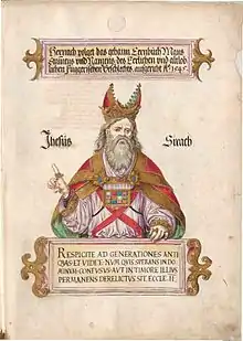 Illustration of the high priest Jesus Sirach in the Secret Book of Honour of the Fugger by Jörg Breu the Younger, 1545–1549