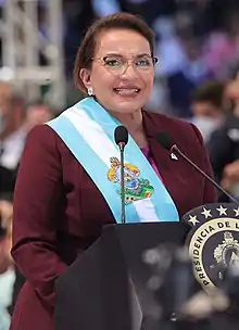 Xiomara Castro (Spanish pronunciation: [ˌsi.oˈmaɾa ˈkastɾo]; born 30 September 1959), is the current President of Honduras since 27 January 2022. She is the country's first female president. Castro has represented the left-wing Libre Party in the 2013, 2017 and 2021 Honduran general elections. She was the First Lady in 27 January 2006 – 28 June 2009.