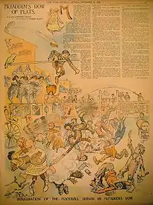 Joseph Pulitzer [protagonist of yellow journalism] succeeded in building the circulation of the Sunday World in New York to over 300 thousand in the early 1880s...he pioneered the use of colored comics in newspapers, which did much to spur the circulation of his Sunday editions. One cartoon in particular made history. It featured bald headed, toothless, grinning kid clad in a yellow sack-like garment. The 'yellow kid’, as the character came to be called, appeared in settings that depicted life in slums of New York and the cartoon was extremely popular.