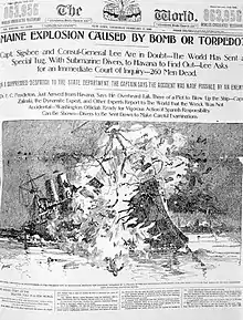 ...Horrific tales described the situation in Cuba--female prisoners, executions, valiant rebels fighting, and starving women and children figured in many of the stories that filled the newspapers. But it was the sinking of the battleship Maine in Havana Harbor that gave Hearst his big story--war. After the sinking of the Maine, the Hearst newspapers, with no evidence, unequivocally blamed the Spanish, and soon U.S. public opinion demanded intervention. - PBS.
