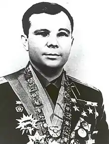 Yuri Alekseyevich Gagarin (9 March 1934 – 27 March 1968) was a Soviet cosmonaut and the first human in space (12 April 1961).